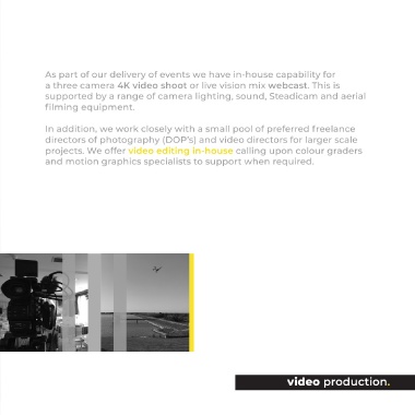 supported by a range of camera lighting, sound, Steadicam and aerial