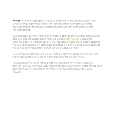 large events agencies and client organisations offering a white